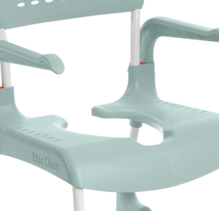 Silla de ducha y WC Etac Clean, casi nueva y con uno o dos usos. - Diseño moderno y funcional. - Asiento ergonómico con apertura frontal. - Reposabrazos abatibles. - Ruedas con freno para mayor seguridad. Añado barra de seguridad acoplable.