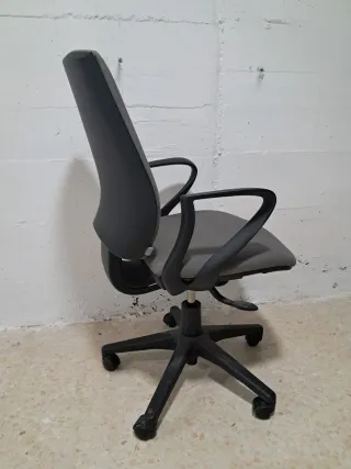 Silla oficina o estudio con respaldo ajustableen altura, robusta y versátil tiene gran acolchado con relleno de alta calidad, con reposabrazos y con ruedas especiales con rodadura silenciosa. Tela ignífuga