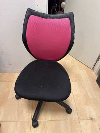Silla de oficina con asiento ergonómico y respaldo. - Base con ruedas para fácil movilidad. - Altura ajustable. - Diseño moderno y cómodo. Habría que cambiar la goma de las ruedas (o las ruedas).