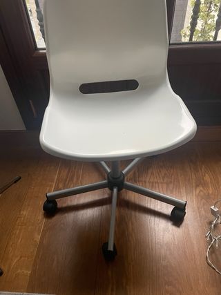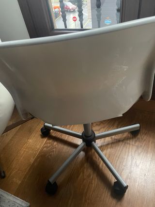 silla giratoria blanca de Ikea en buenas condiciones, tiene una rozadura en el lateral, como se aprecia en la última foto.