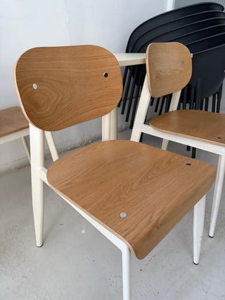 Modernas sillas con un diseño escandinavo que aportarán estilo a tu hogar. Son cómodas y ligeras. - Asiento de plástico. - Patas de madera. 30€ la unidad