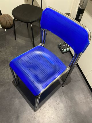 2 sillas azules en buen estado. Se pueden apilar. ligeras.