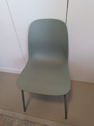 Silla moderna de Ikea, ideal para cualquier espacio. - Diseño ligero y apilable. - Patas estables para mayor seguridad.