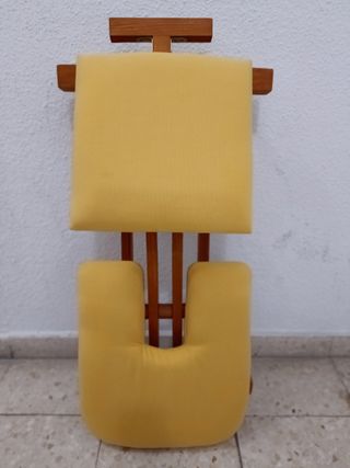 Silla ergonómica, de escritorio. Con 6 posiciones de acomodamiento (regulable), silla ligera, fabricada a mano en madera, asientos en color amarillo, con ruedas, la de las fotos. Esta silla es para la educación postural, ayudándonos a corregir malos hábitos posturales, para dar masajes, etc. Entrego en mano en Madrid.