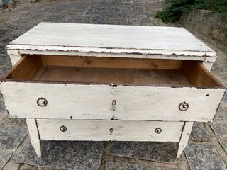 Espectacular cómoda francesa estilo Luis XVI en madera lavada y con trabajo de pátina en color blanco roto, con tres cajones grandes. Se recoge en NAVACERRADA (puedo dar contacto de transportista) ----- mueble mesa vitrina silla vintage antigüedades decoración interiorismo decapado decapada envejecido shabby chic rustica rustico rural tradicional casa campo hotel tienda local restaurante