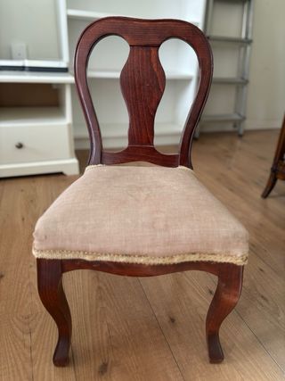 Sillita de madera natural clásica estilo Luis XVI. Uso como decoración o silla auxiliar. Se puede tapizar a gusto de cada uno.