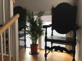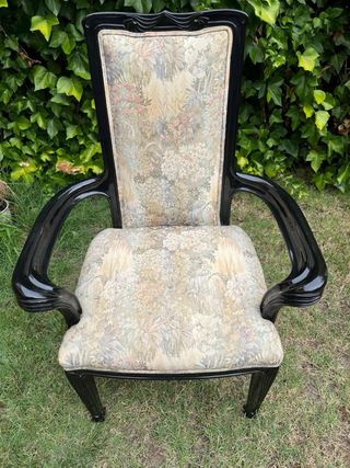 Sillas 🪑 Pareja de sillas clásicas estilo Luis XVI – madera negra y tapicería floral Pareja de sillas clásicas de salón, elegantes y cómodas, con mucho estilo, ideales para dar un toque distinguido a tu hogar. ✨ Características: • Estructura en madera maciza pintada en negro. • Estilo inspirado en el clásico francés (Luis XVI). • Tapicería estampada floral vintage. • Buen estado, sólidas y listas para usar (con ligeras señales normales de uso). 💰 Precio por la pareja: 190 €. No se venden por separado. 📍 Recogida en Pozuelo de Alarcón (Madrid)