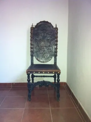 Seis sillas de nogal en buenas condiciones con los muelles en perfecto estado, se pueden entregar restauradas y tapizadas por cien euros cada una