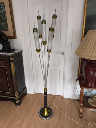 Lámpara de pie italiana diseñada por Carlo Nason en Murano, Italia 1970 Diseño espectacular con 5 puntos de luz en forma de juncos Mide 171cm alto. Base 29cm diámetro VDV3069 antiguo antigüedad retro antigua cornucopia espejo veneciano Mazzega space age sputnik fase manises Willy Rizzo Romeo Rega wassily bambú cesca vitra Eames Breuer Corbusier aplique becara Borgia Conti hanbel valenti midcentury Hollywood regency Hispania zara kave home maison Jansen bagues nórdico escandinavo huarte cómoda silla foco araña Luis XV XVI moderno rústico alabastro bohemia lalique vintage acero cromado latón dorado lumica porcelana plata globo vela