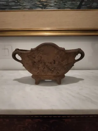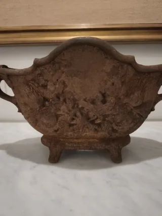 Jardinera francesa antigua realizada en hierro fundido Súper decorativo para poner plantas dentro. Tiene agujero de drenaje. Diseño con decoración vegetal en ambas caras y con asas en los extremos Ideal para un jardín, terraza o balcón Mide 36*15'5cm y 18'7cm de altura VDV3200 Antiguo antigüedad vintage clásico jarrón mesa silla butaca exterior escultura figura urna becara Borgia Conti subasta Segre maceta fuente farola forja bronce planta palmera Hanbel retro Francia anticuario mosaico cómoda entredós aparador aluminio farol macetero barro cocido árboles zara kave home sklum Luis XV XVI imperio isabelino victoriano napoleon III