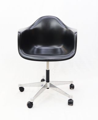 Un clásico que ha roto moldes. Las Plastic PACC diseñadas por los Eames son mu versátiles y cómodas. Se pueden adaptar a un comedor o estudios u oficinas. Sistema hidráulico de 35 a 48cm. Carcasa de polipropileno negro y base de aluminio pulido. 1 disponible . 62x60x75 Vintage design nordico industrial retro escandinavo kave home Muji maison du monde zara home Habitat Vinçon Santa&Cole Stua Eames Alessi vitra Andreu World Alki Artek Joquer Kartell artemide Knoll Mobles 114 Nordic Tales Normann Copenhagen Arper Fontanaarte Fritz Hansen Gubi Louis - Estructura de metal. - Asiento de plástico resistente. - Mecanismo de giro fluido.
