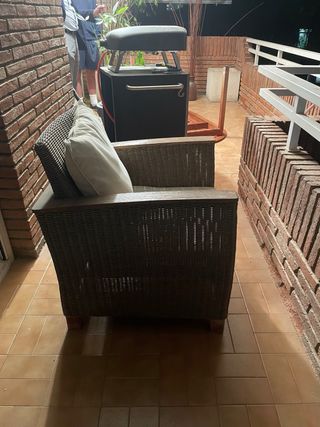 Silla de exterior IKEA Jutholmen en perfecto estado. - Estructura de metal y mimbre. - Cojines en color gris. - 107€ nuevo Está muy bien cuidado y es muy cómodo. Lo vendo porque me voy a mudar al extranjero por motivos de trabajo. Recogida en Poblenou, ascensor disponible.