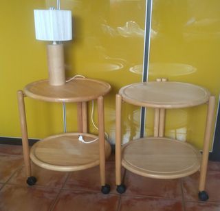 Antiguas mesas plegables madera Haya maciza con ruedas. De calidad. Bandejas extraíbles. Buen estado,ideal salón o dormitorio. Una Sellada L'Albero della Gomma 54 ancho H50cm 140€, la otra 110€ pareja 210€ retro vintage Mid Century diseñador Camarera salón comedor silla taula vitra chair carrito mesillas noche bar cesca sillón Guzzini design vitra G Plan Biok teca artemide knoll Kartell Nórdico Bernini Space age fibra de vidrio Pilma rejilla Italia Hábitat Vinçon Jacobsen Panton danesa abatible Cesca Breuer Susana Lazy industrial hierro table supletoria lamp auxiliar mesita pino rejilla escandinavo fusta cajonera mesita salón