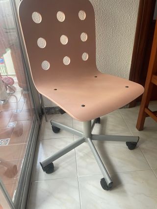 Silla giratoria de ikea en color rosa, su altura se puede graduar ancho 58cm fondo 56cm profundidad de asiento 32cm ancho del asiento 35cm altura mínima 37cm altura máxima 48cm