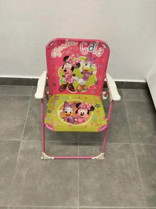 Silla infantil de playa o jardín con diseño de Minnie Mouse. Es plegable y fácil de transportar. - Estampado de Minnie y Daisy. - Estructura metálica. - Asiento y respaldo de tela.