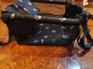 Práctica silla para el coche, ideal para transportar a tu mascota de forma segura y cómoda. Se pliega fácilmente para guardarla. - Interior acolchado. - Correas de seguridad ajustables. - Base antideslizante. Se ha usado una sola vez, está nuevo