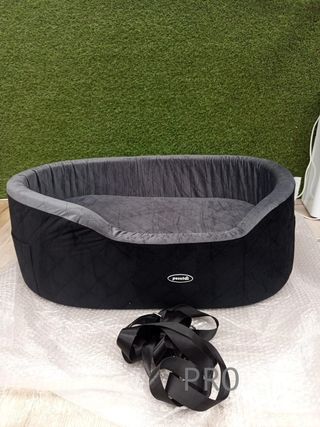 Práctica silla de coche para mascotas, ideal para viajes seguros y cómodos. - Diseño plegable para fácil almacenamiento. - Correas de sujeción ajustables. - Malla transpirable en los laterales.