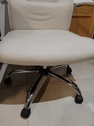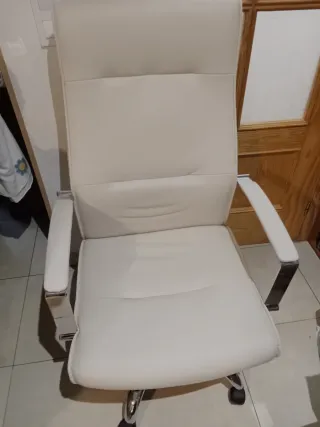 Silla de oficina ergonómica en color beige - Respaldo alto cuello y asiento acolchado regulable. - Reposabrazos. - Base con ruedas para fácil movilidad. Puedo llevarlo yo en coche debido a su volumen hasta distancias que se recorran en 30 min. Tiene su caja original y todos los tornillos y plásticos protectores. Ante cualquier aclaración, no dudéis en preguntar.