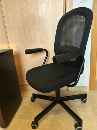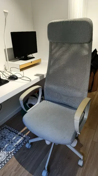 está muy bien cuidada, se compró en pandemia para teletrabajo y desde entonces no se ha usado más además viene incluido los reposabrazos que se venden aparte en ikea. la verdad que puede verse tal vez usada pero apenas ha tenido uso. Está realmente bien cuidada y funciona bien, sobretodo las ruedas. las fotos no le hacen justicia, sí queréis másfotos o videos decidmelo. Depende de la zona os la puedo llevar en coche por algo más de precio. cualquier cosa me preguntáis. Se entregará limpia y aspirada.