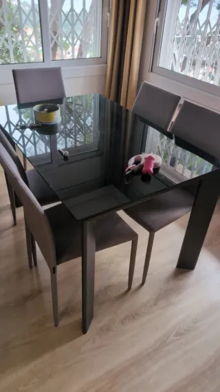 Mesa cristal 4 sillas comedor