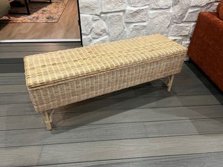 Banco de mimbre de IKEA, perfecto para añadir un toque natural a tu hogar. Su diseño versátil lo hace ideal para cualquier estancia. - Material: Mimbre - Color: Beige En perfecto estado