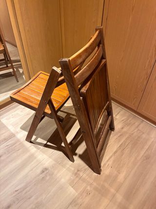 Conjunto de dos sillas plegables de madera. Son prácticas y fáciles de guardar. - Diseño clásico y funcional. - Asiento y respaldo de listones.