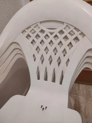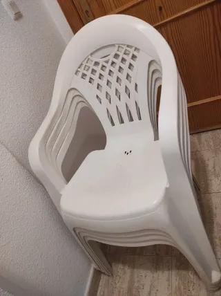 Conjunto de cinco sillas plegables, perfectas para cualquier ocasión. - Estructura metálica. - Asiento y respaldo de plástico. Se pueden vender por unidades o packs, se fijará precios