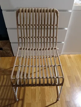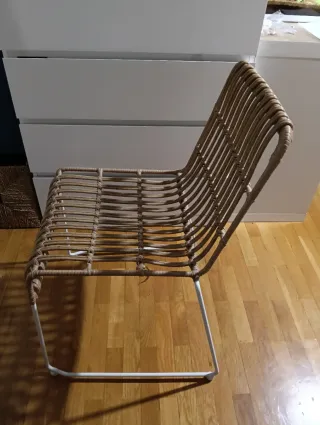 Sillas de salón, comedor o incluso jardín, cómodas y vistosas Se vende pack de 4 y el precio es por unidad. Están en perfecto estado y sin uso. Ideales para una decoración de estilo rústico o nórdico. - Estructura de metal. - Asiento y respaldo de ratán tejido. Interior exterior