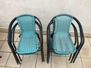 Conjunto de sillas de exterior con un diseño tejido. - Estructura resistente. - Acabado en tono marrón. Si se compra todo junto el precio unitario son 25€, si se vende por separado son 35€.