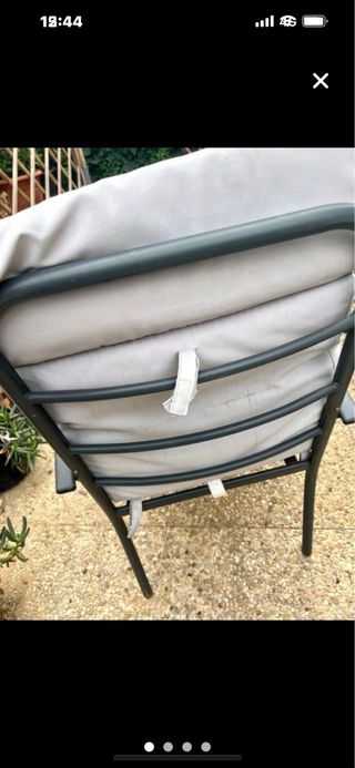 Conjunto de tres sillas reclinables para terraza o jardín. Son cómodas y fáciles de guardar. - Estructura metálica. - Asiento y respaldo de tela. Precio por silla 15€ Pack de 3 sillas 30€ (2x3)
