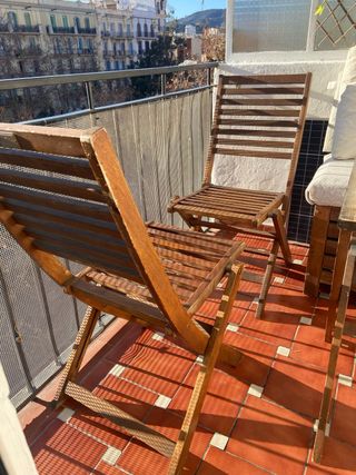 Vendo muchos muebles y electrodomésticos por mudanza!! Todos disponible para recogida entre el 31/01 y el 2/02. Dos Sillas plegables de madera, perfecta para tu balcón o jardín. Su diseño permite guardarla fácilmente. El precio es para las dos. - Estructura de madera resistente. - Plegable para un almacenamiento sencillo.