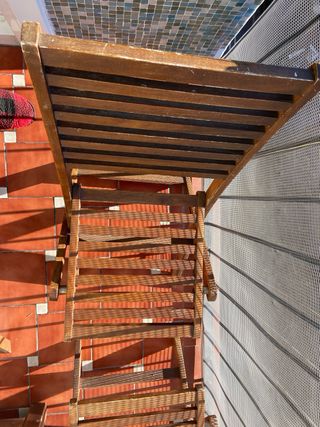 Lo estoy vendiendo porque tiene muchas manchas de humedad/lluvia pero nunca lo he usado. Tumbona plegable de exterior, perfecta para relajarse al sol. Su diseño combina materiales naturales para un estilo acogedor. - Estructura de mimbre y madera. - Plegable para fácil almacenamiento y transporte.