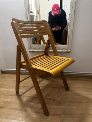 Silla plegable de madera, ideal para espacios reducidos o para tener un asiento extra. - Diseño clásico y funcional. - Fácil de guardar y transportar.