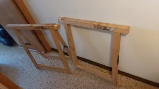 Par de caballetes de madera plegables. Ideales para poner un tablero y hacer una mesa, escritorio o para bricolaje. En buen estado y funcionales