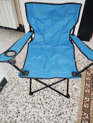 Vendo 4 sillas de camping compradas en Decathlon por 49,99€ cada una. Solo han sido utilizadas un verano y están en muy buen estado, prácticamente nuevas. Son muy cómodas, ligeras para transportar y ocupan muy poco espacio al guardarlas, ideales para excursiones, acampadas o terrazas. Precio: 40 € cada una (se pueden vender por unidades o las cuatro juntas). Las 4, 150€