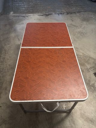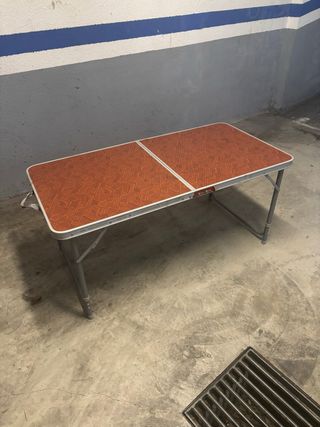 Mesa plegable, ideal para llevar de camping o para usar en exteriores. Su diseño permite un fácil transporte y almacenamiento. Buen estado. Dos alturs, para niños y adultos. Se regala silla decatlhon portatil. - Patas plegables para mayor comodidad. - Marco de aluminio resistente. Tag: camper furgo