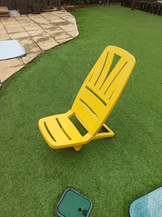 2 Sillas de playa plegable, semi nueva y lista para usar. (Precio por unidad 25€.) Precio del mercado 40a 50€ - Estructura de metal y plástico, multinacional Asiento muy cómodo, y cojin.. - Fabricada en España.