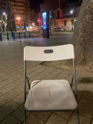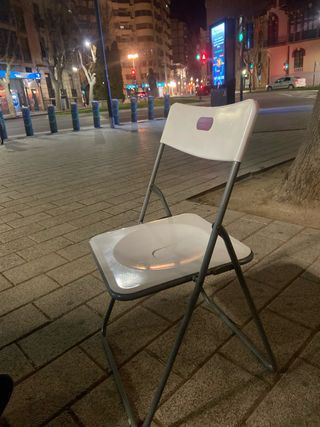 Dos sillas plegables de metal y plástico. Son blancas y están en buen estado. - Ideales para espacios pequeños. - Fáciles de guardar. - Perfectas para invitados. 20€ cada una