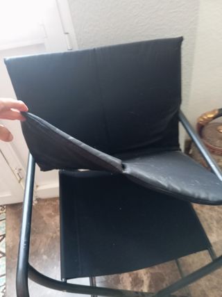 Silla plegable, estructura metalica y tapizado en color rojo el asiento y el respaldo negro. Asiento más confortable ya que se tapizaron de nuevo pos tapicero. Dispongo de 5 sillas. Precio por unidad: 15€