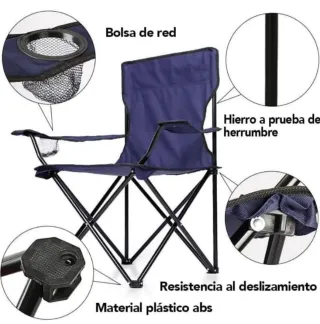 Pack de cuatro sillas plegables de director. Son resistentes y están en perfecto estado. No son las típicas de playa. Las patas y la tela son gruesas. - Ideales para eventos al aire libre o uso doméstico. - Estructura metálica resistente. - Tejido de poliéster duradero.
