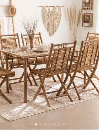Conjunto de dos sillas plegables de bambú, perfectas para exteriores. Su diseño las hace fáciles de guardar y transportar. - Estructura de bambú natural. - Asiento y respaldo tejidos.