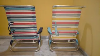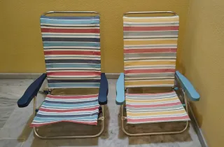 Conjunto de dos sillas bajas plegables, perfectas para la playa o el camping. Son cómodas y fáciles de transportar. Muy poco uso 25 EUROS CADA UNA 45 EUROS SI TE LLEVAS LAS 2