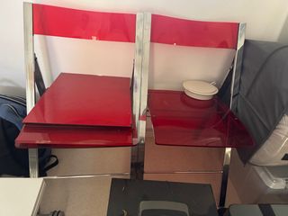 2 Sillas Hierro Rojas y Plateadas plegables .