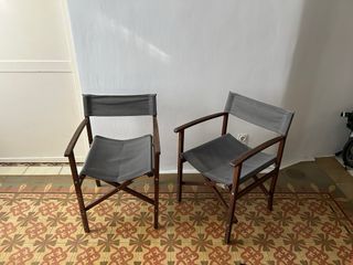 Silla de director plegable con estructura de madera. - Asiento y respaldo de tela. - Brazos de madera. -- 3 Unidades, c/u 25€ Precio en tienda 69€