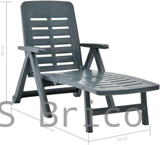 Tumbona Plegable Smeraldo con Ruedas Verde Abrir galería de fotos del producto para ver fotos reales Tumbona plegable con respaldo multiposición y equipada con ruedas. Fabricada en resina de alta calidad, resistente a la intemperie y a los rayos UV. Muy fácil de abril y plegar, práctica y funcional, perfecta en el jardín, junto a la piscina en el camping incluso en la playa. CARACTERÍSTICAS TÉCNICAS: - Fabricada en polipropileno - Respaldo multiposición - Diseño de color verde. - Plegable con ruedas - Medidas: 72x189x96 cm - Peso: 10,40 kg Para presupuestos personalizados de más de 3 unidades, solicitar en info@acsbrico.com