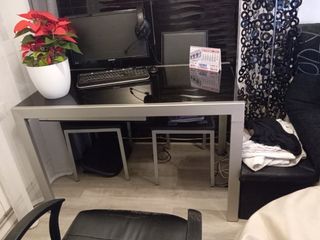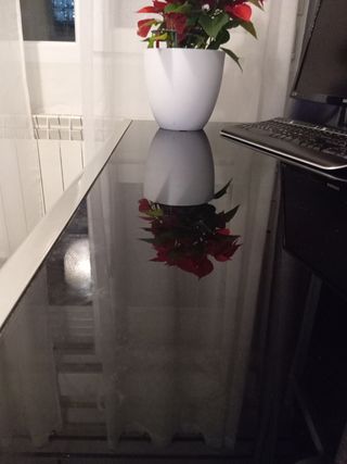 Mesa negra de cristal cerrada mide 1'20 abierta creo q 2.20 sin sillas SOLO MESA