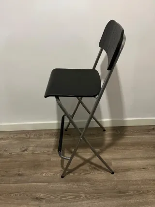 Taburete alto plegable de IKEA, perfecto para espacios reducidos o para tener a mano. - Estructura metálica. - Asiento y respaldo de madera. - Color negro.