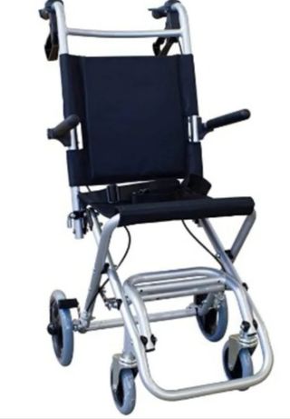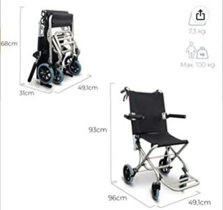 Silla de ruedas plegable marca Mobiclinic Neptuno, vendo por falta de uso. Silla de tránsito de aluminio, muy ligera, con bolsa de transporte, plegable. Freno en las manetas, con reposapiés plegable, reposabrazos abatibles, cinturón de seguridad. Ergonómica, pesa 6,95 kg. fácil de transportar