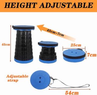 Taburete telescópico que se adapta a tus necesidades. Es ligero y fácil de transportar. - Diseño plegable y extensible. - Ideal para exteriores y eventos.