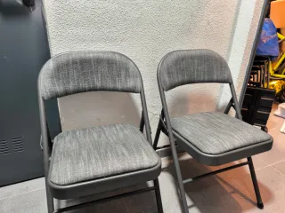 Conjunto de dos sillas plegables con un diseño moderno y funcional. - Estructura metálica resistente. - Asiento y respaldo tapizados en tela.